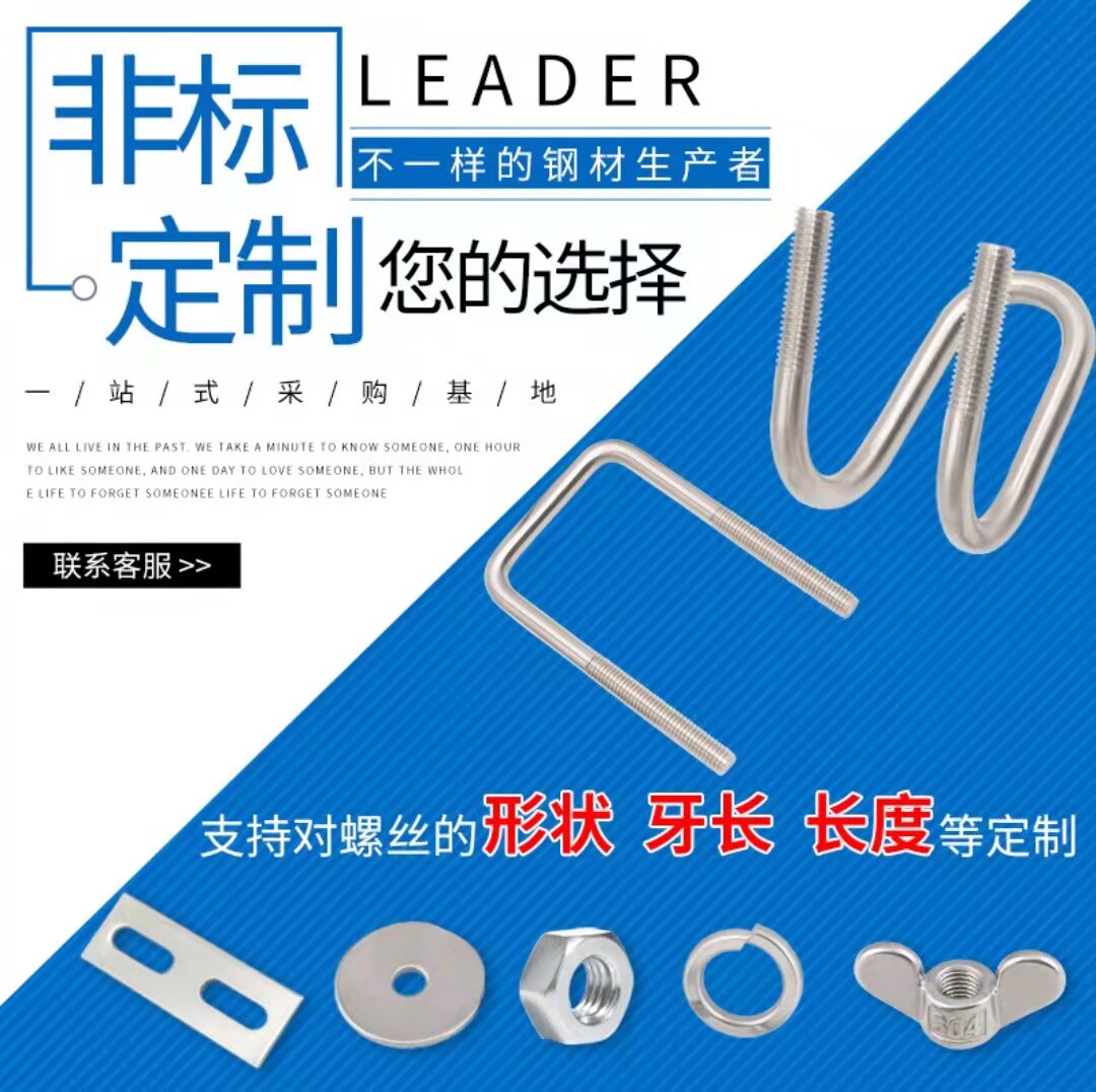 304 stainless steel square screw straight angle U screw square fixed cartridge tube fixed screw non - standard customization