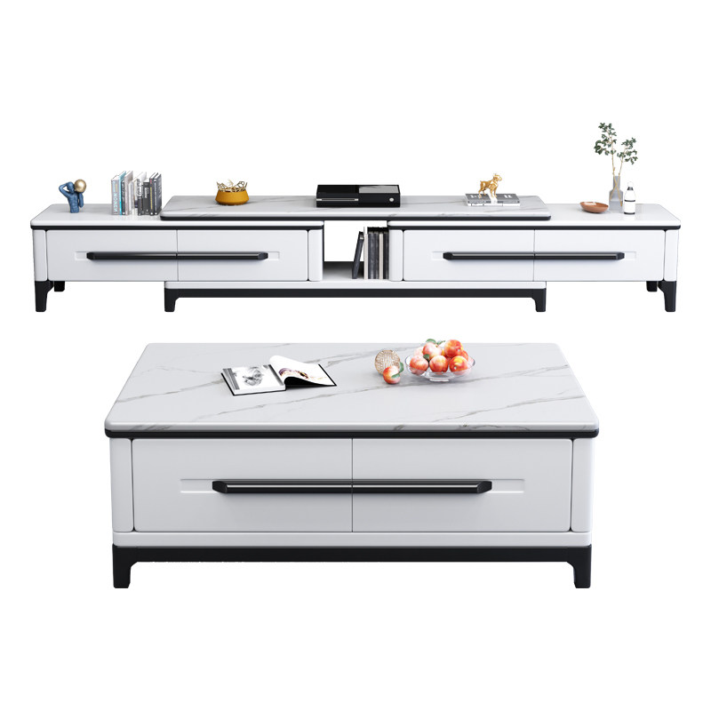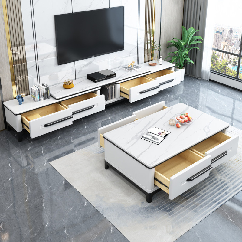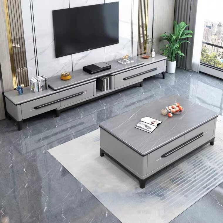 Light luxury slate TV cabinet coffee table combination modern minimalist household small apartment marble telescopic living room floor cabinet