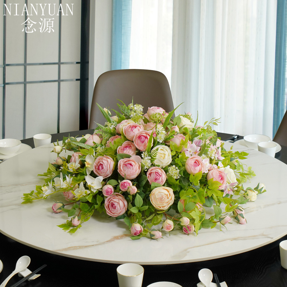 Hotel Great Dining Table Emulation Flower High-end Dining Room Bag Compartment Large Round Table Turntable Pendulum Flower Decoration Fake Flower Center Pendulum