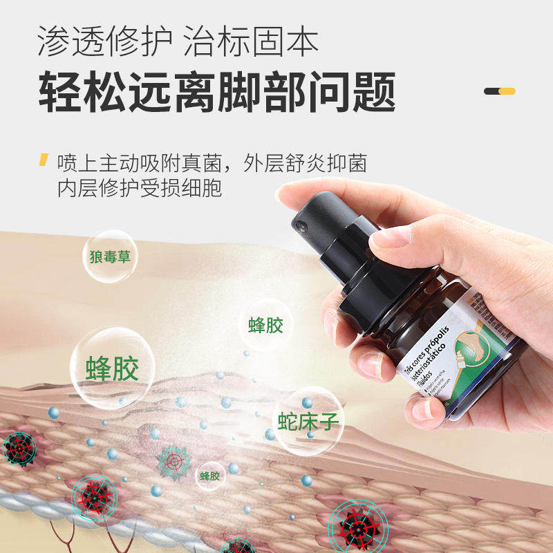 (Spot) Brazil Three-color propolis foot gas spray spray Bacteriostatic Liquid Anti-Itch Deodorant Clear Foot 40ml Bottle