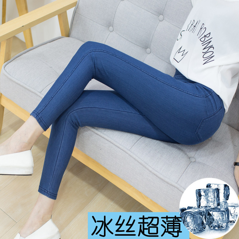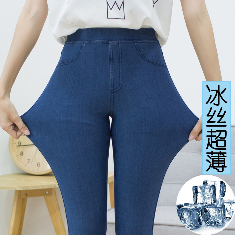 Summer ultrathin Jeans Woman 90% Ice Smoke Smoke Tubes Pants Tightness High Waist Large Size Four Sides Elastic-Thin Heather