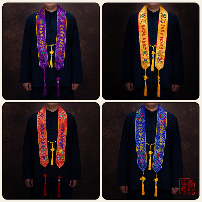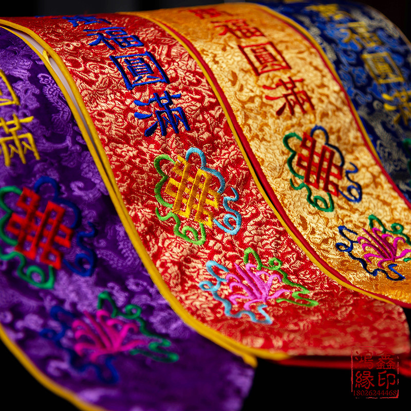 Yellow (eight auspicious knitting ceremony) Red (eight auspicious knitting belt) Purple (eight auspicious knitting belt) Blue (eight auspicious knitting band) Yellow (eight auspicious satin ceremony belt) Red (eight auspicious satin)