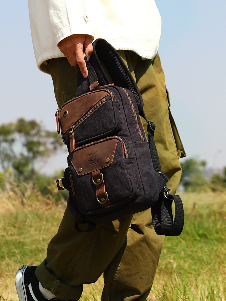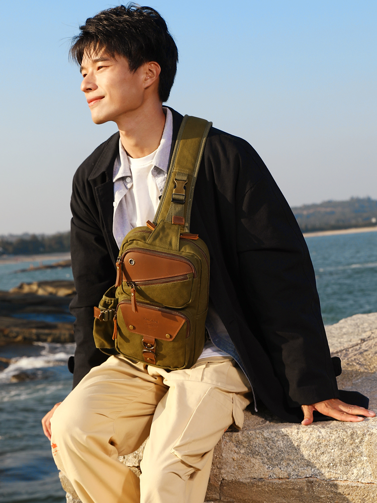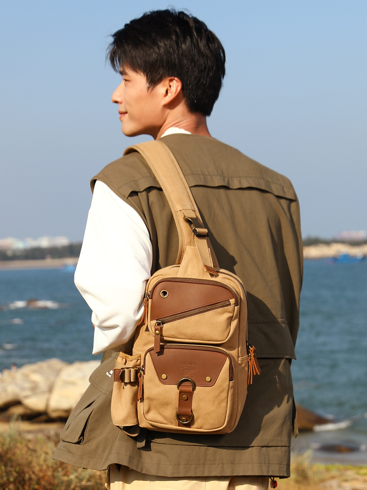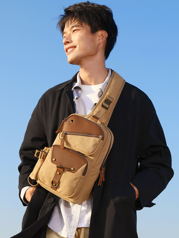 New Tide Generation New Retro Chest Bag Multifunction Purse Men Skew Satchel Canvas Single Shoulder Bag Genuine Leather Men's Bag