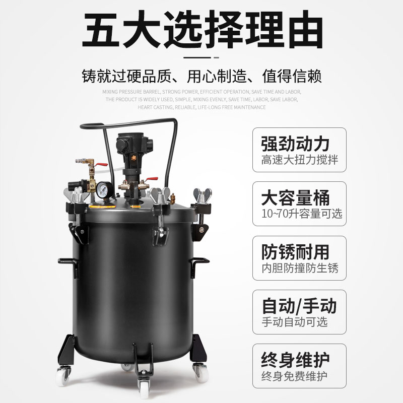 10 liters automatic stirring pressure drum 20 liters automatic mixing pressure barrel 30 liters automatic mixing pressure drum 40 liters automatic mixing pressure barrel 60 liters automatic mixing pressure drum 70 liters automatic mixing pressure barrel 10 liters manual mixing pressure barrel 20 liters manual mixing pressure drum 30 liters manual mixing pressure drum 40 liters manual mixing pressure barrel 60 liters manual mixing pressure barrel If you need to stir without mixing, contact customer service Oh new Teflon paint, better quality can be customized capacity stainless steel under the material can be customized heating liquid level display negative pressure