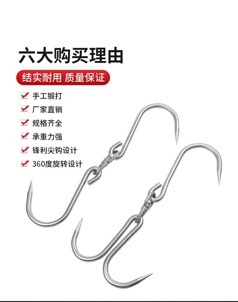 Carbon steel 6 Number Single hook (load bearing 10 catty) Promoted carbon steel 8 Number Single hook (load bearing 30 catty) Carbon steel 10 Number of single hook (load bearing 60 catty) Carbon steel 12 Number of single hook (load bearing 100 catty) Carbon steel