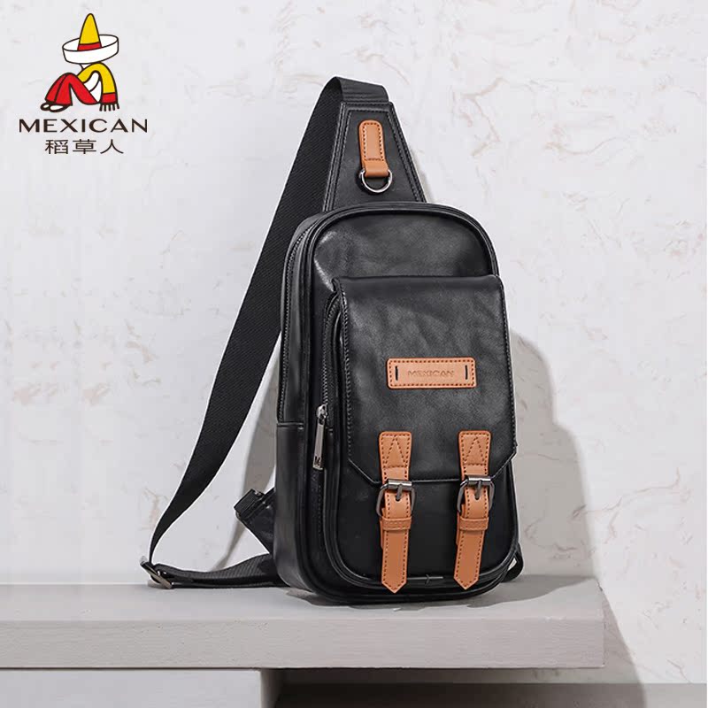 Rice Straw Man Chest Bag Men's Large Capacity Diagonal Satchel Waterproof Casual Sports Single Shoulder Bag Collision Color Youth Retro Male Bag Tide