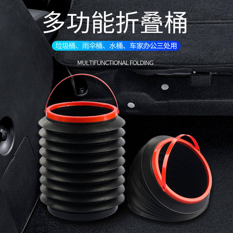 Car-mounted garbage can multifunctional car with umbrella cover folding telescopic shrinking barrel in-car containing supplies