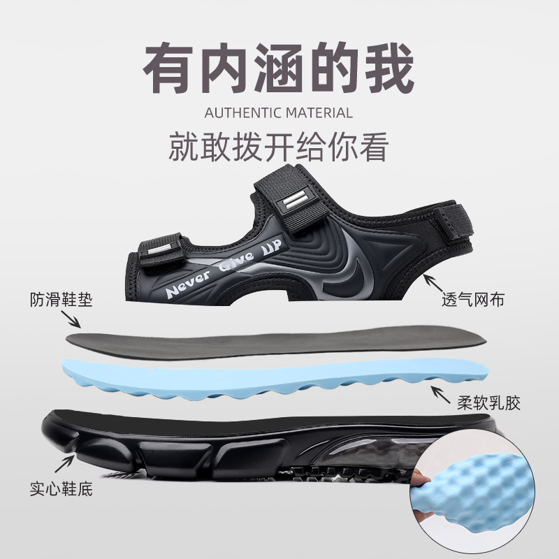 Men's sandals summer outwear 2022 new outdoor casual beach shoes deodorized heightening soft-bottom teenagers sandals