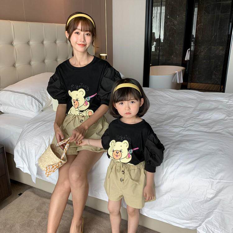 Grape Summer Pro Dress Mother Woman Dress Cartoon Suit Little Girl Bubble Cuff T-shirt Shorts Two Sets Tide
