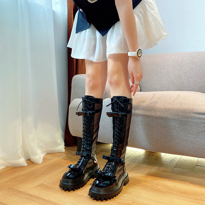 Summer boots children long boots 2022 new mesh boots genuine leather mesh yarn Long cylinder boots breathable thick bottom hollowed-out Martin boots