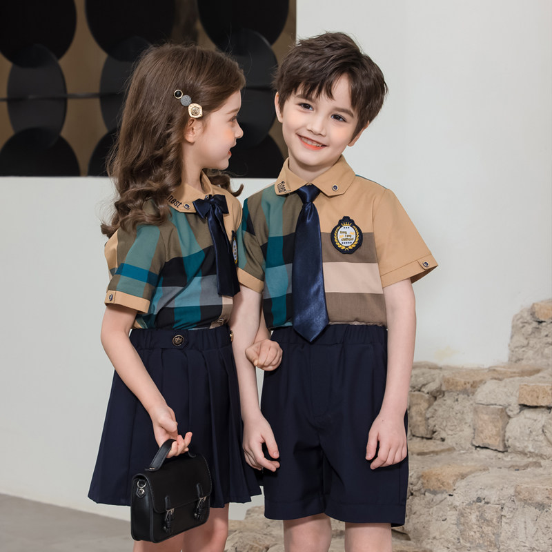 2022 new summer dress kindergarten uniform elementary school students school uniform graduation season six one performance clothing high-end British style