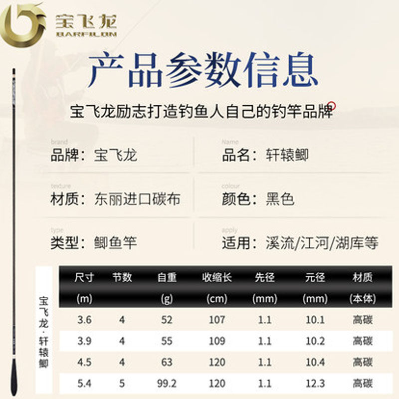 Baofei Longxuan Mighty Bridge Fishing Rod 3 6-5 4 m High Carbon Leisure Wild fishing Rod Fishing Rod Super Light Ultrafine Rod-Taobao