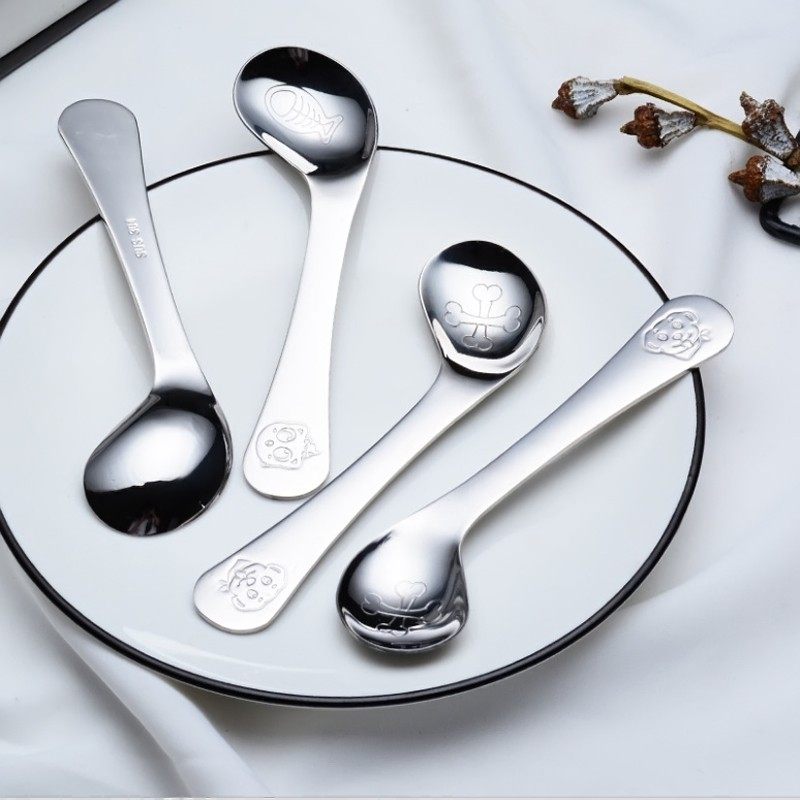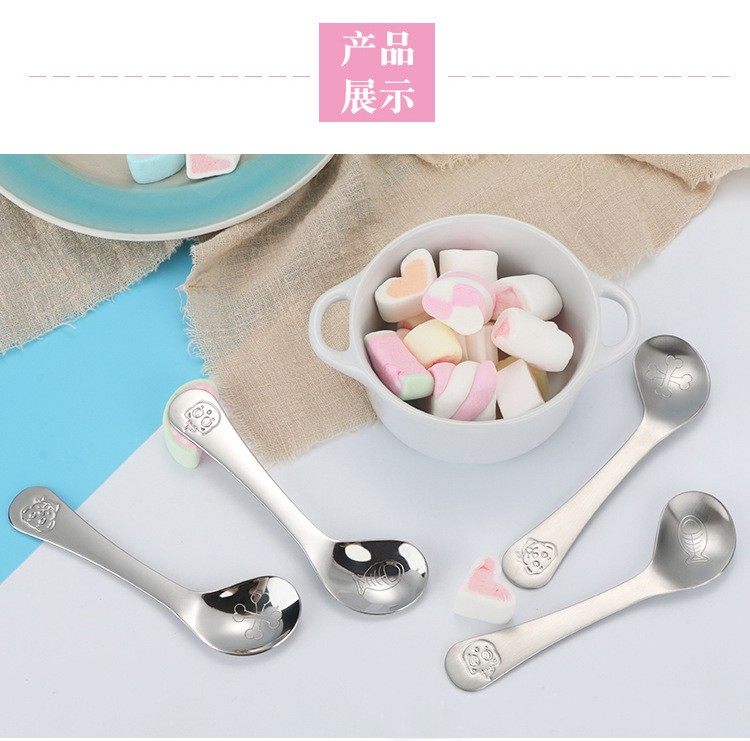 304 Stainless Steel Cartoon Crooked Mouth Spoon Baby Training Elbow Spoon Deputy Food Elbow Spoon Baby Tablespoon Child Meal Spoon