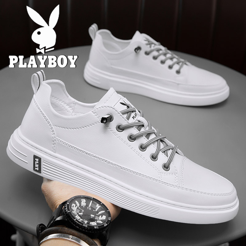 Floral Playboy men's shoes Summer breathable small white shoes men's genuine leather One foot pedal workwave shoe casual board shoe thin