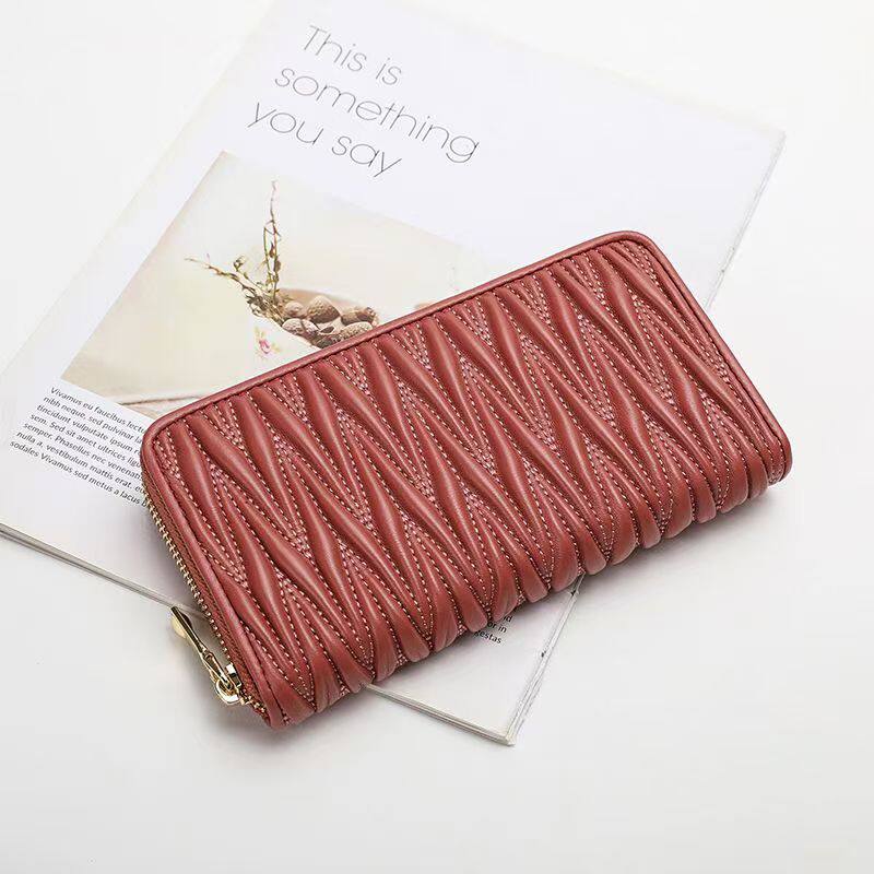 2022 Folds Lady Whole Goat Leather Wallet Korean Version Fashion Multi-Position Rfid Genuine Leather Long Version Wallet