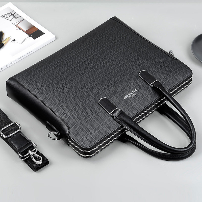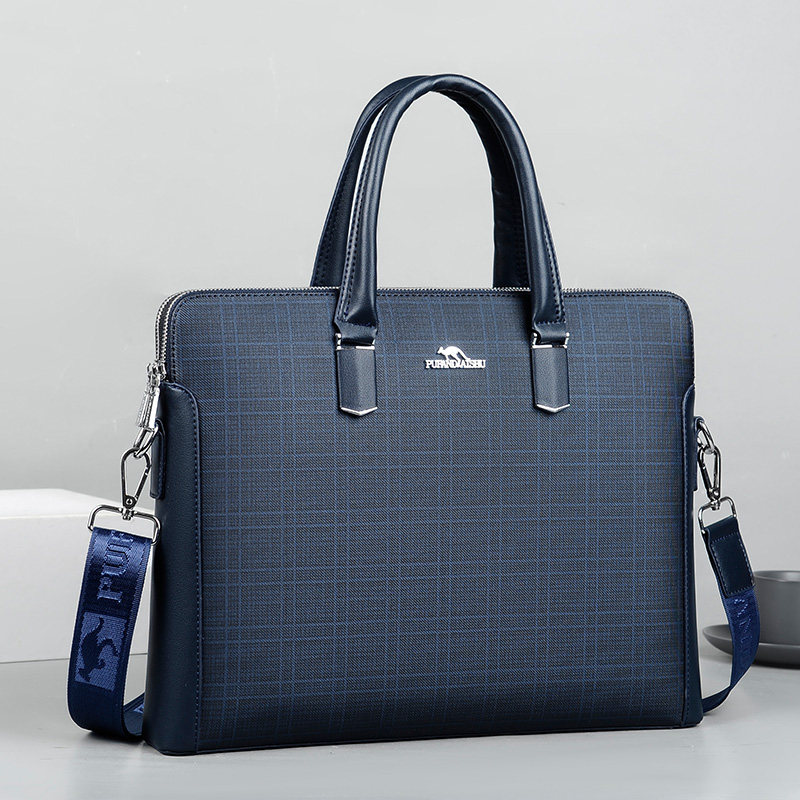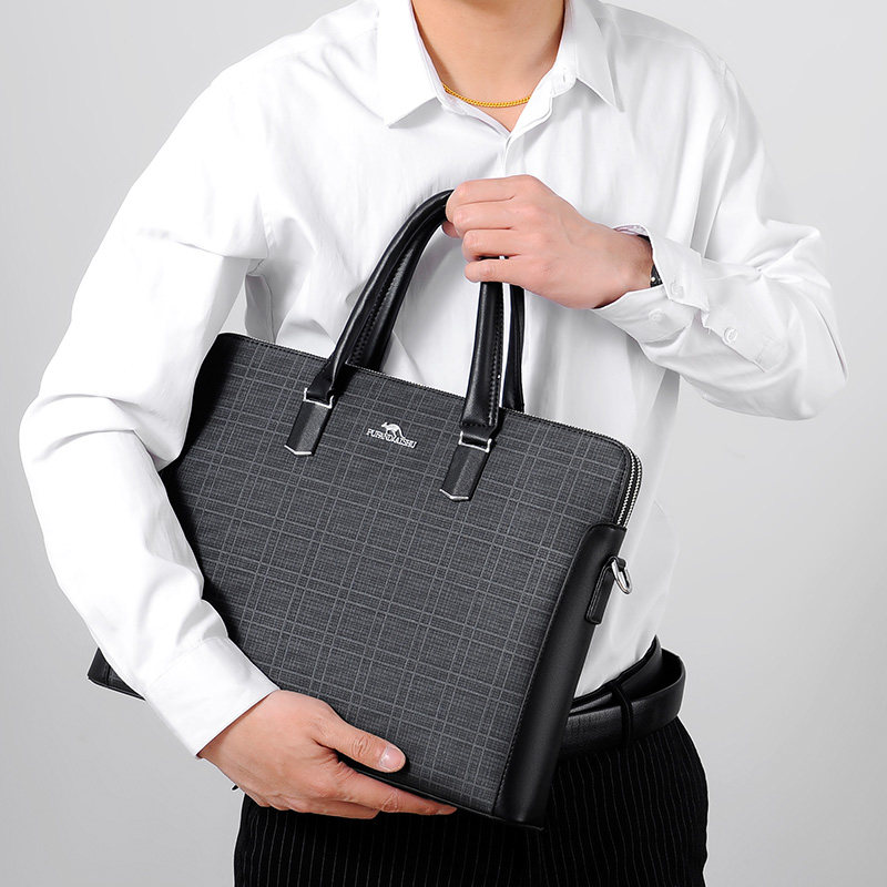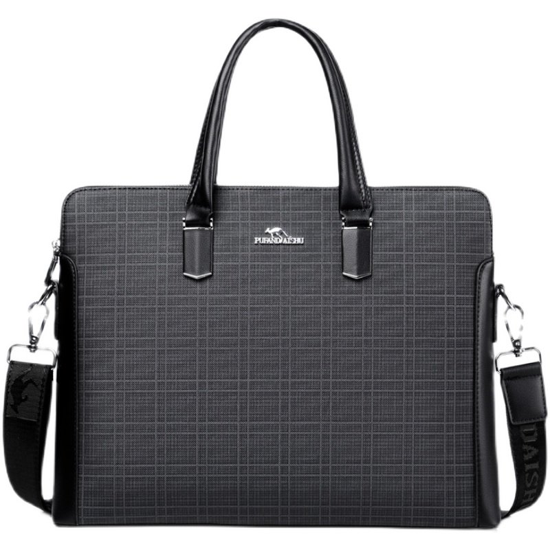 Pufan Kangaroo Briefcase Men's Business Horizontal PVC Men's Handbag Retro Plaid Large Capacity File Computer