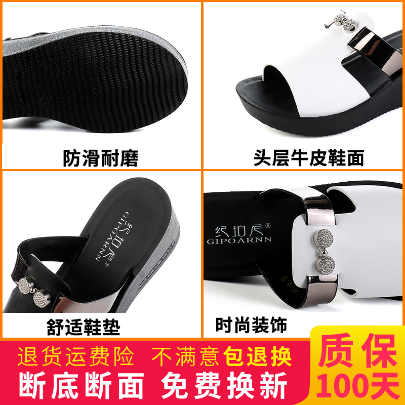 Mom slippers women outside summer wear middle - aged people soft solid anti - slip 2022 new middle - aged old leather high and fashion