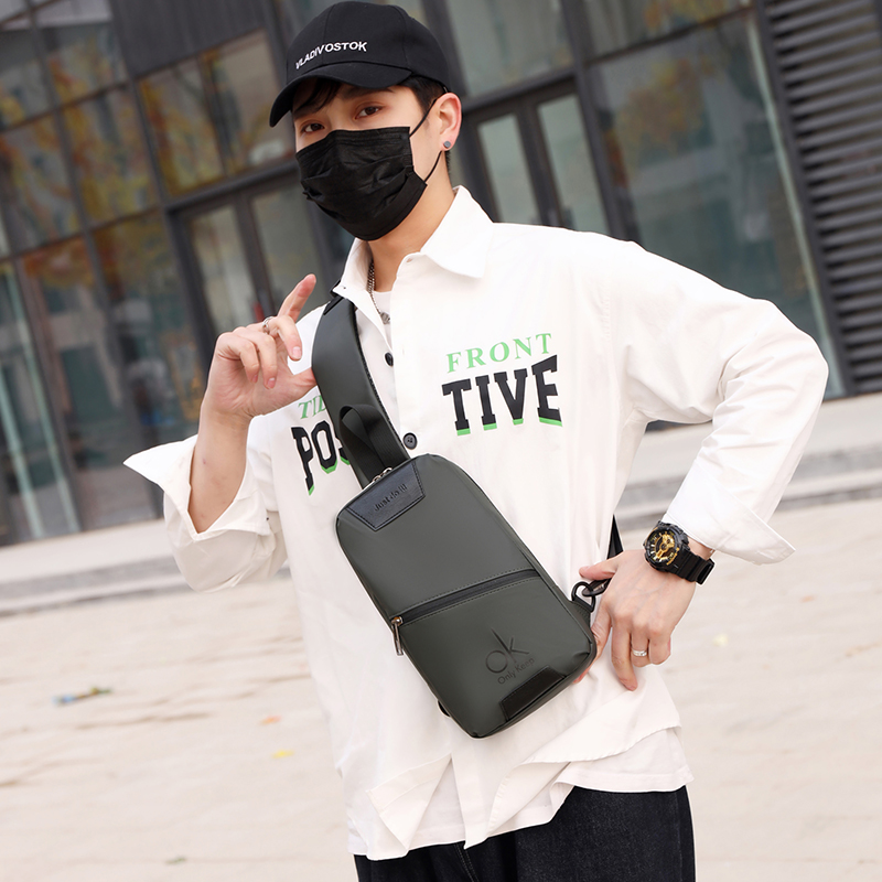 2022 Spring Casual Solid Color Men's Chest Bag Casual Shoulder Messenger Bag Fashion Commuter Small Waterproof Backpack