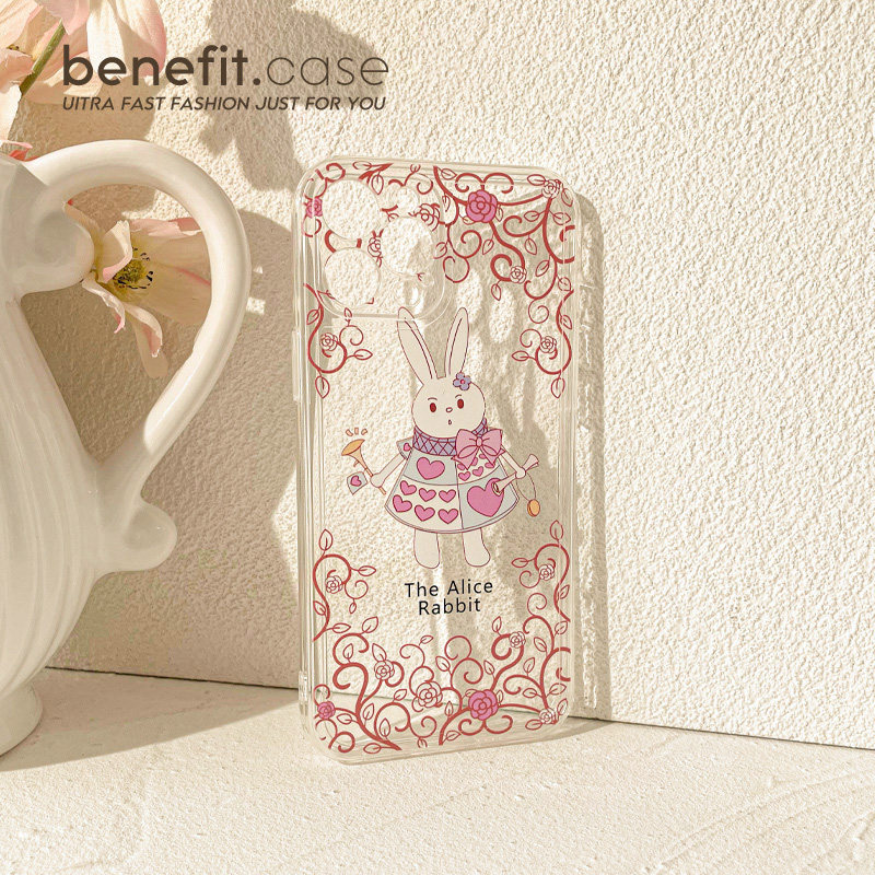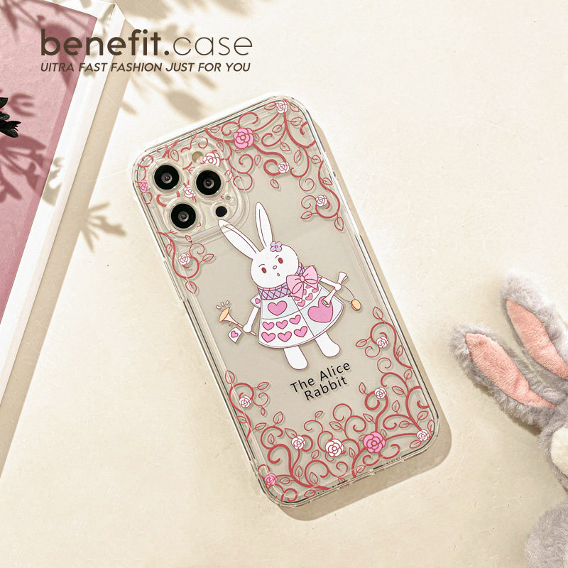 Benefit Japan-ROK cartoon Alice rabbit applies Apple 13promax mobile phone protection shell iphone12 transparent mini soft xsmax full package xr creative 8