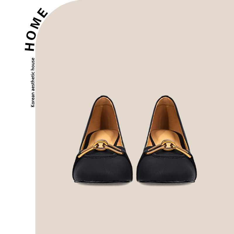 ULOVAZN Japan 2023 autumn and winter new thick-heeled single shoes women's shallow mouth black loafers
