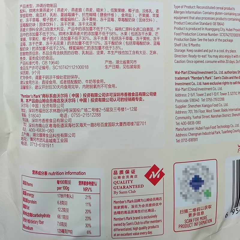 Sam Member Store Supermarket fruit Dodo cereal Slices Ready-to-eat Flushed Cereal Nuts Oatmeal Nutritious Breakfast Oats