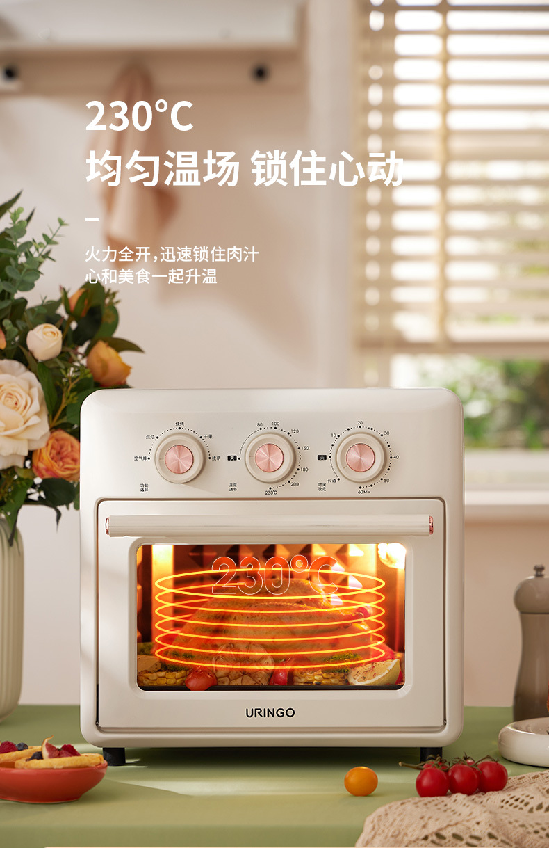Built-in lighting, hot air circulation, air frying, sterilization, hidden heating tube