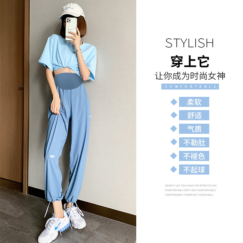 Pregnant Woman Pants Summer Outside Wearing Thin Ice Silk Casual Pants Small Child Pregnancy Early Spring Woman Summer Two Wear Broadlegged Pants Spring Dress