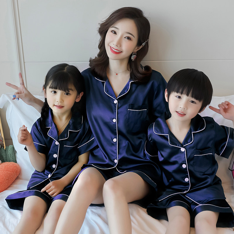2022 new parent-child sleepwear mother girl girl Summer Sweet Beauty Ice Silk Children Summer Thinness Home Dress can be worn outside