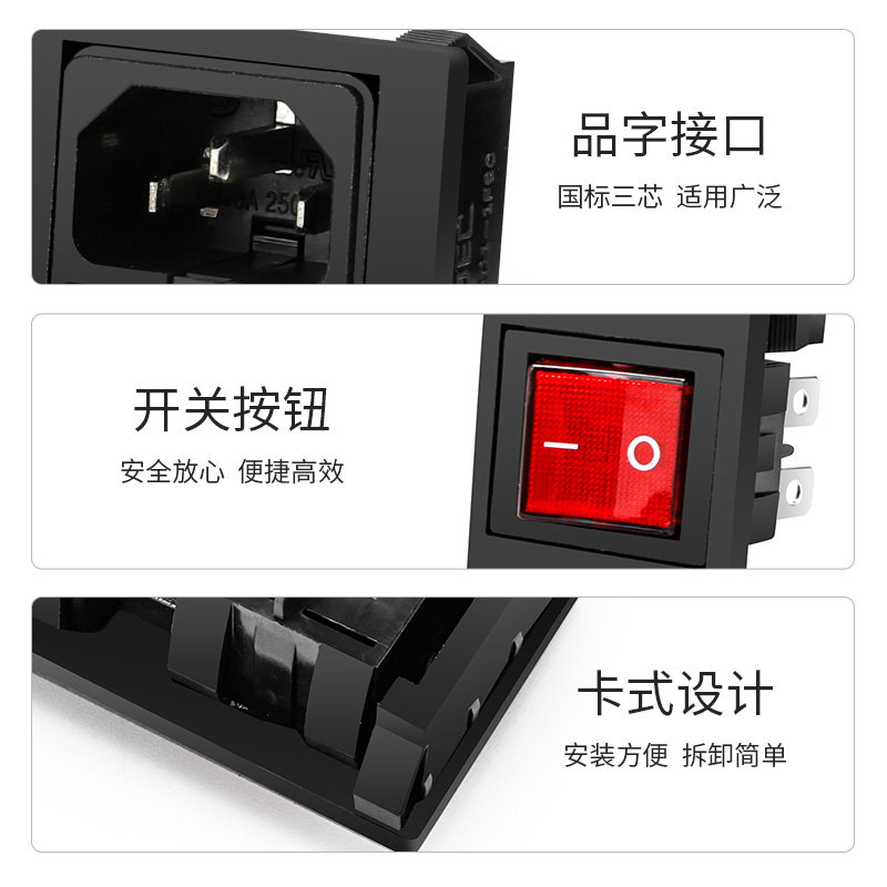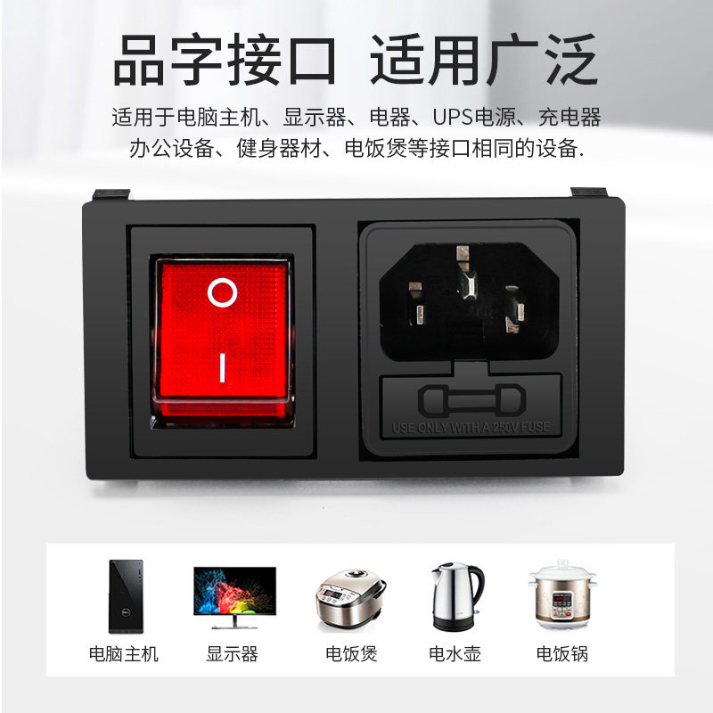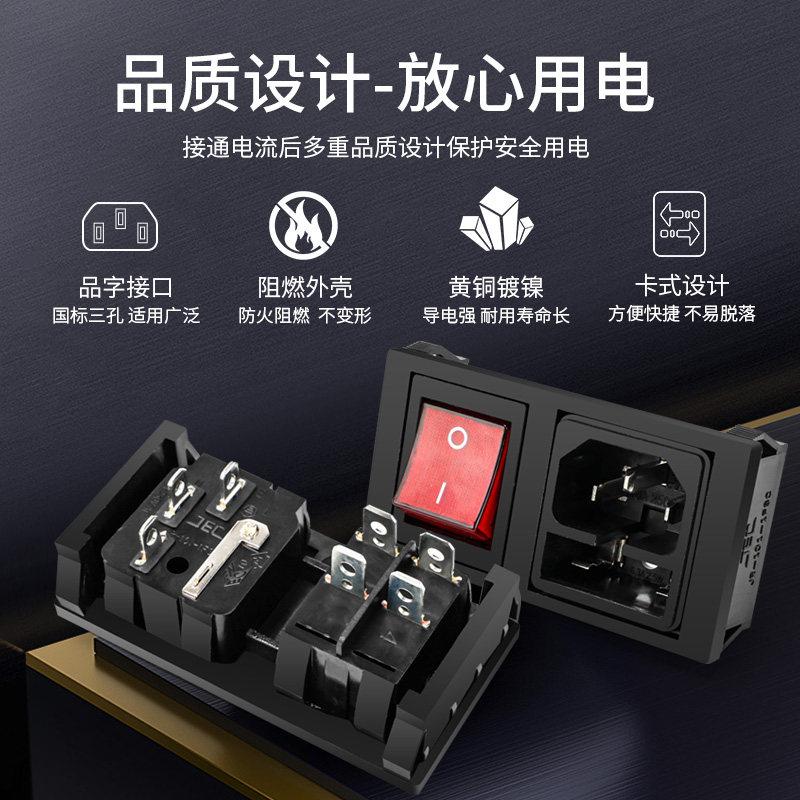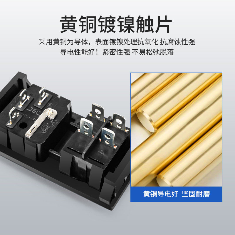 Huijun Card Transverse word socket AC power socket brass band lamp with fuse device Three-in-one electric