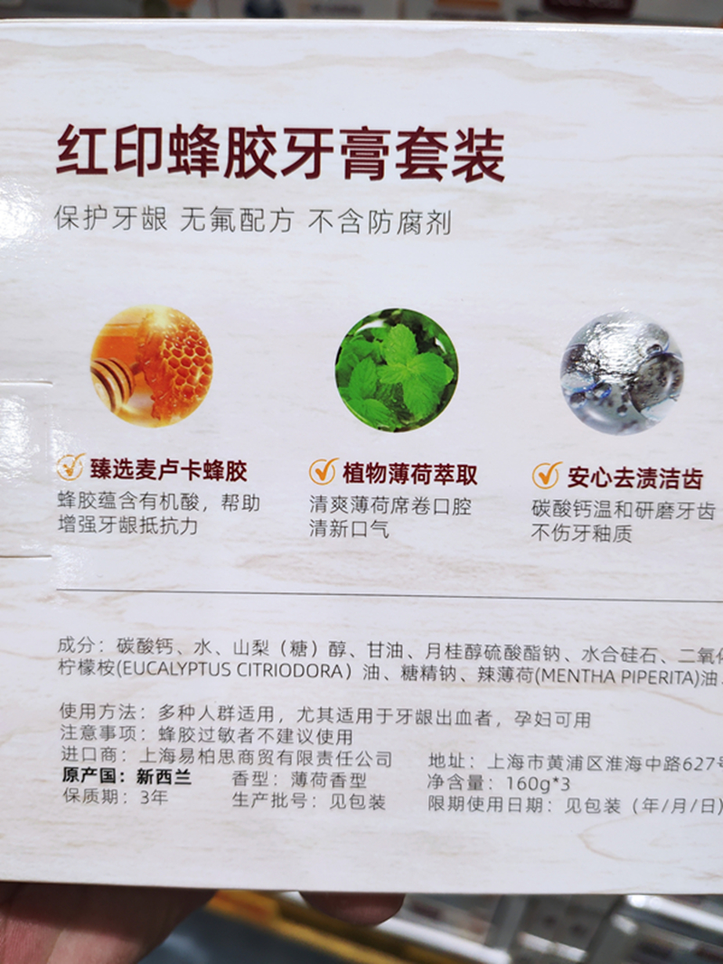 Sam Member Supermarket New Zealand Import Red Printed Red Seal Propolis Toothpaste Suit 160gx3 Box