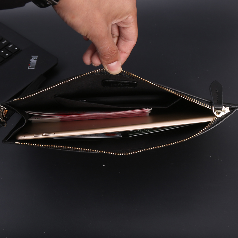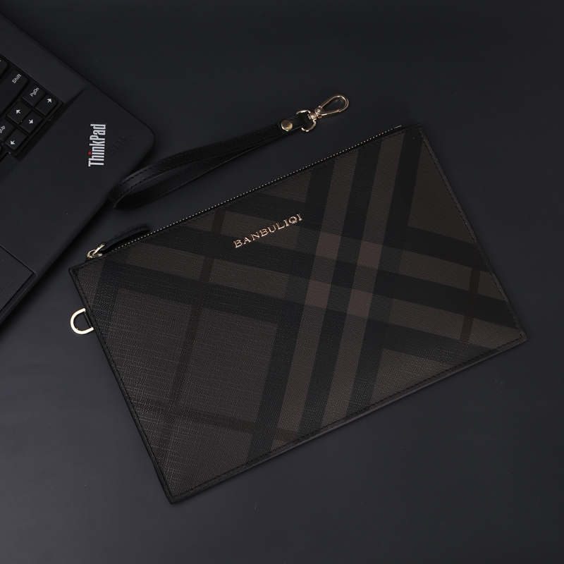 Hong Kong Genuine Leather Men's Bag 2022 New Clutch Bag Plaid Business Fashion Handbag Envelope Bag Casual Wallet