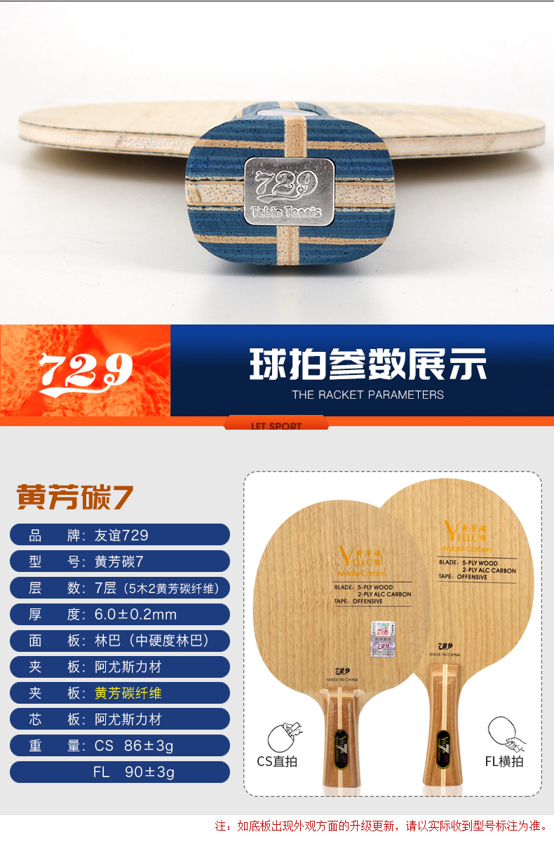 729 table tennis floor arc fast attack 7-layer yellow carbon beginner entry professional table tennis straight shot horizontal shot