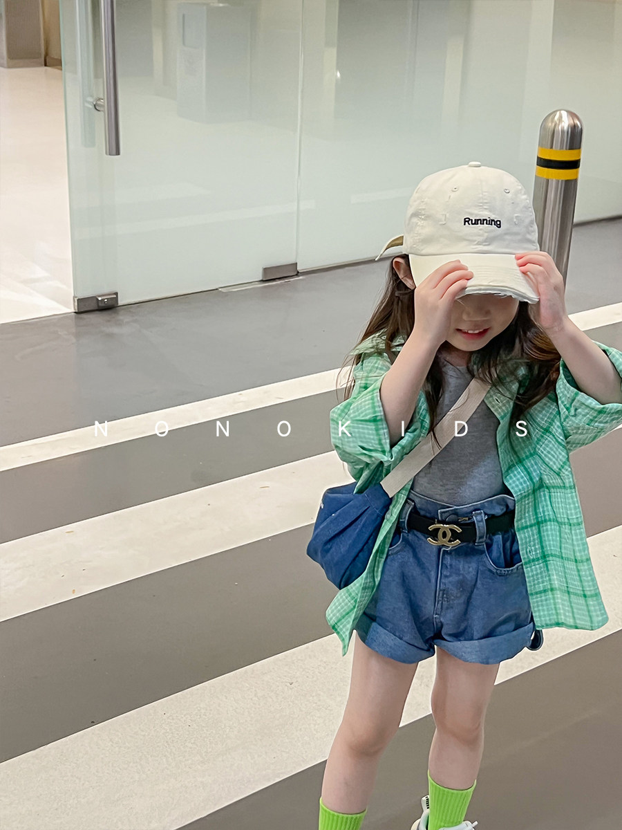 NONO KIDS Summer 2022 new Lazy Wind Girls Display White Plaid Shirt 100 Hitch Casual Blouse Sunscreen