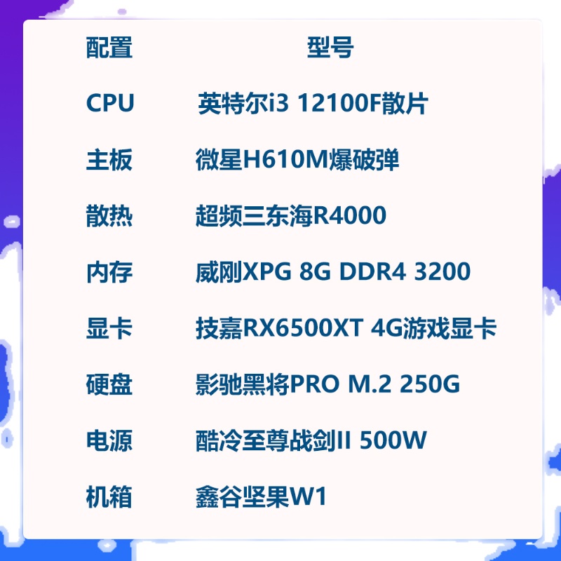Intel12 i3 i3 12100F RX6500XT RX6500XT entry-level DIY assembly machine stand-alone gaming computer host