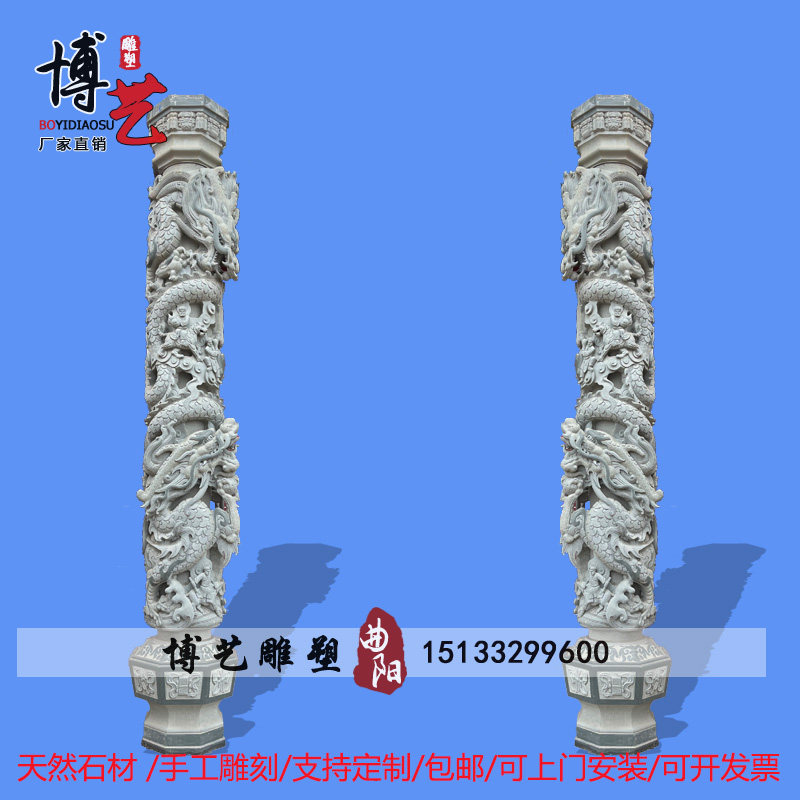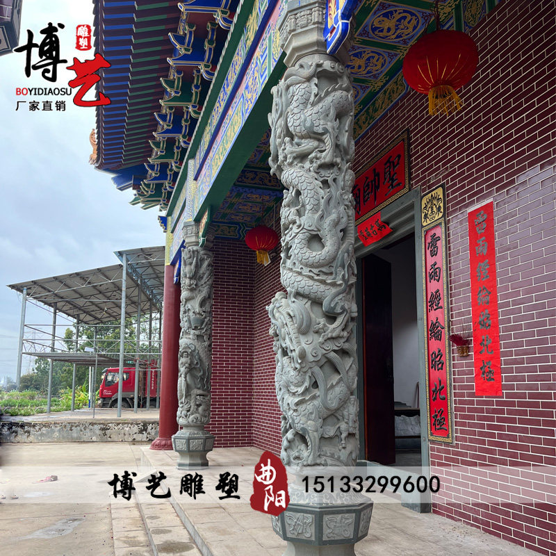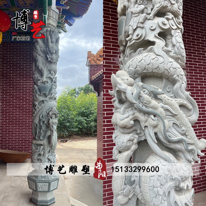 Green Stone Dragon Column Ancestral Hall Stone Sculpture Disc Dragon Pillar Temple Marble Dragon Relief Han White Jade Square Landscape Culture Column