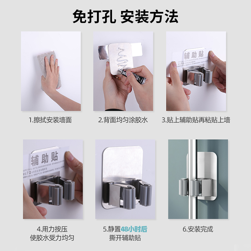 Mop hook Perforated Wall-mounted wall-mounted Makeup Room Containing Deviner Powerful Adhesive MAKEUP ROOM STAINLESS STEEL SWEEP GRIP