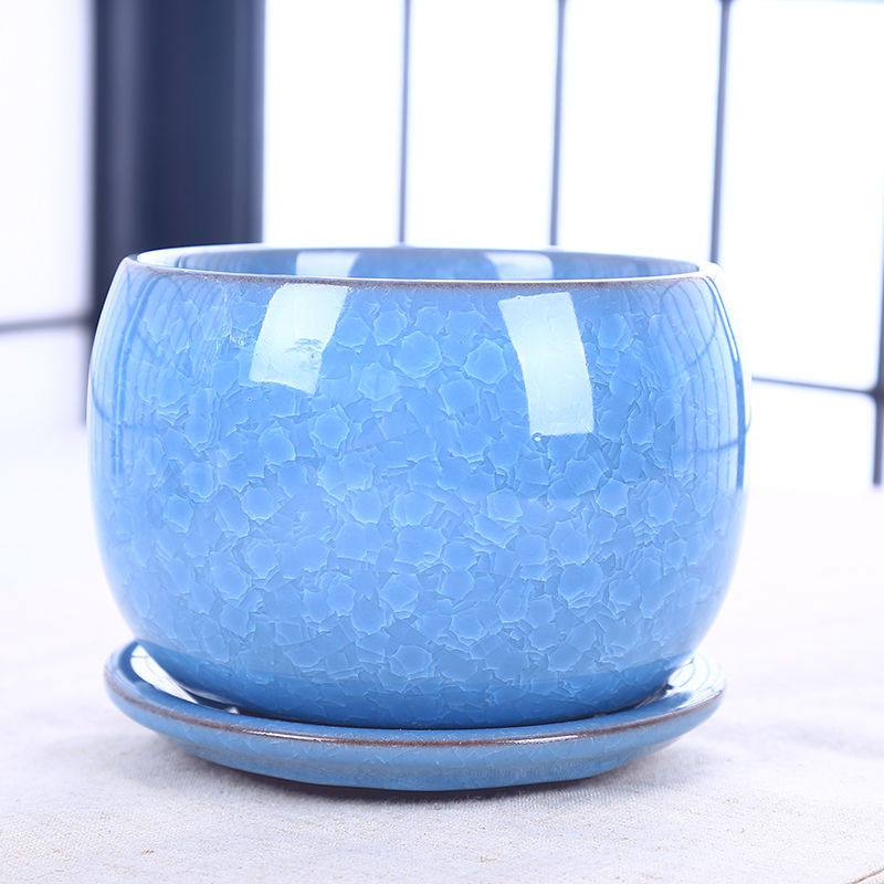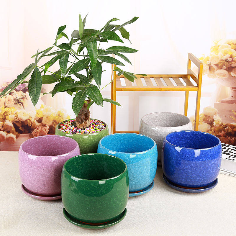 Ceramic table minimalist Large number of ice cracked flower pots green loo small hair treasure tree multi-meat candy color flower pots with trays-Taobao