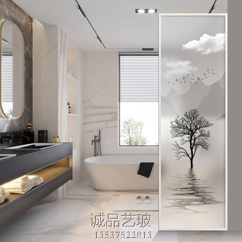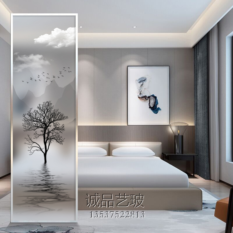 Art Glass Customised Steel New Screen Living Room Genguan Frosted Light Transmission Painted bifacial 2022 Abstract Tree