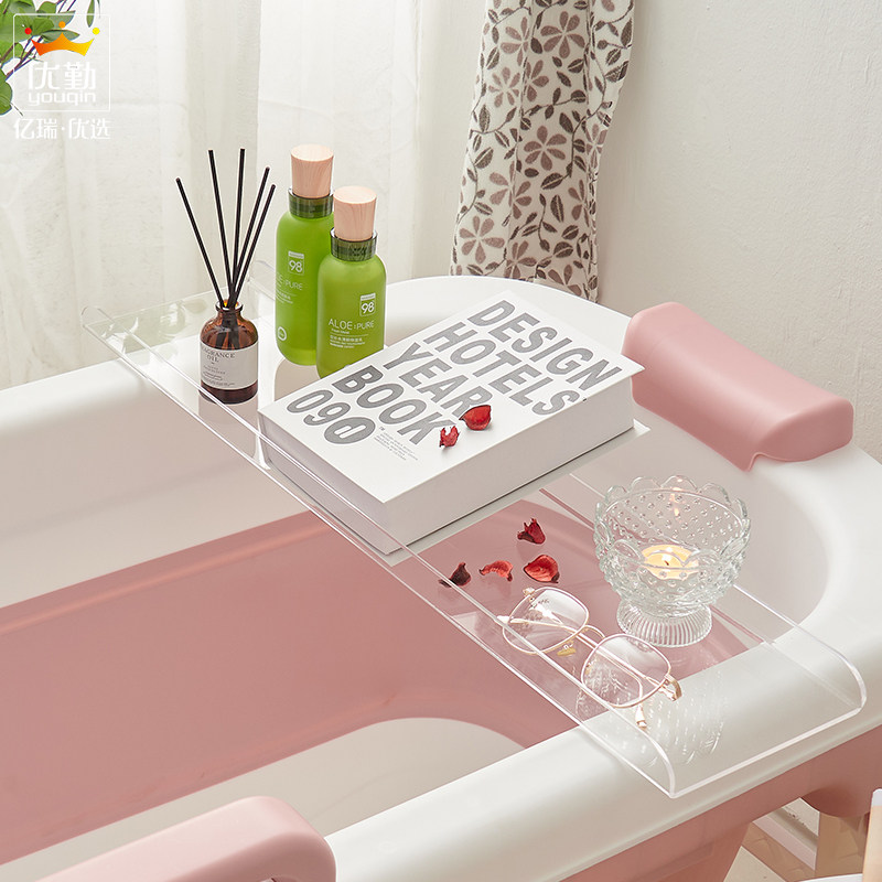 Acrylic Transparent Bathtub Shelve With Makeup Room With Shower Bracket Multifunction Light Lavish Bathroom Non-slip Containing shelf