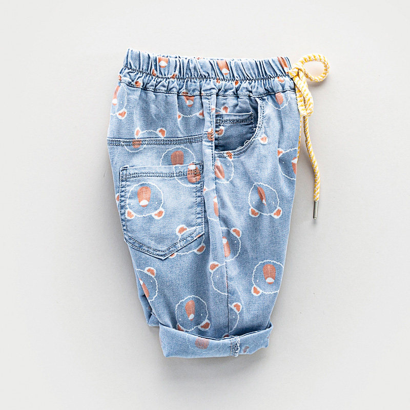 Baby jeans Girls baby baby print pants can open up children five - point pants big pp baby shorts