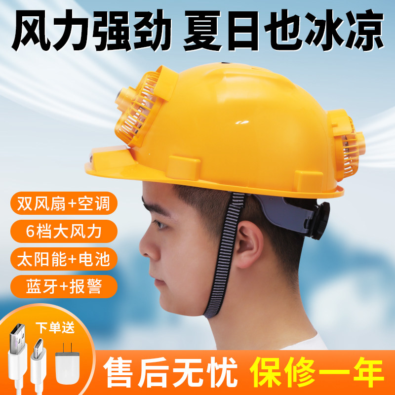 Safety helmet with double fan safety helmet Solar rechargeable air conditioning Refrigeration Bluetooth with lamp cooling site with a hat
