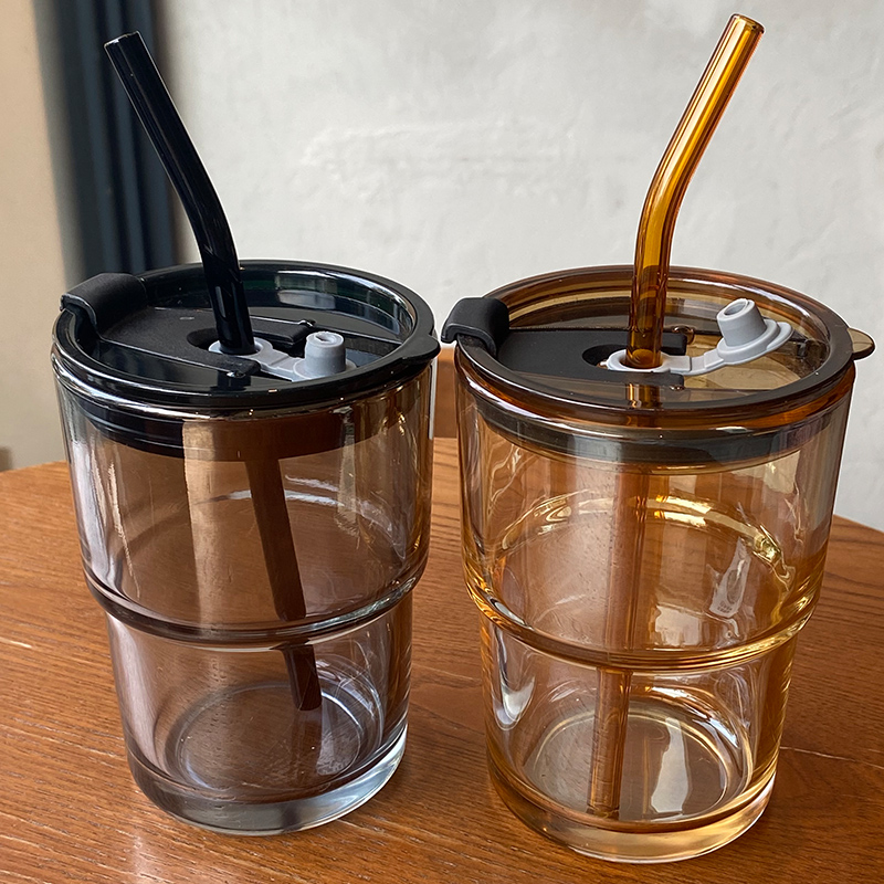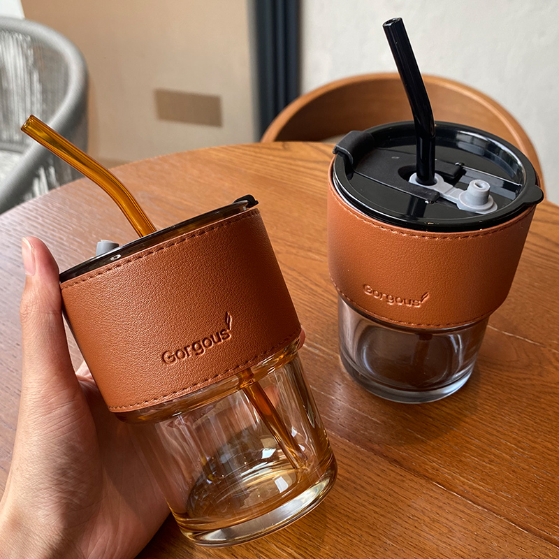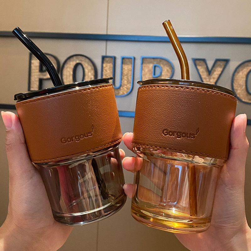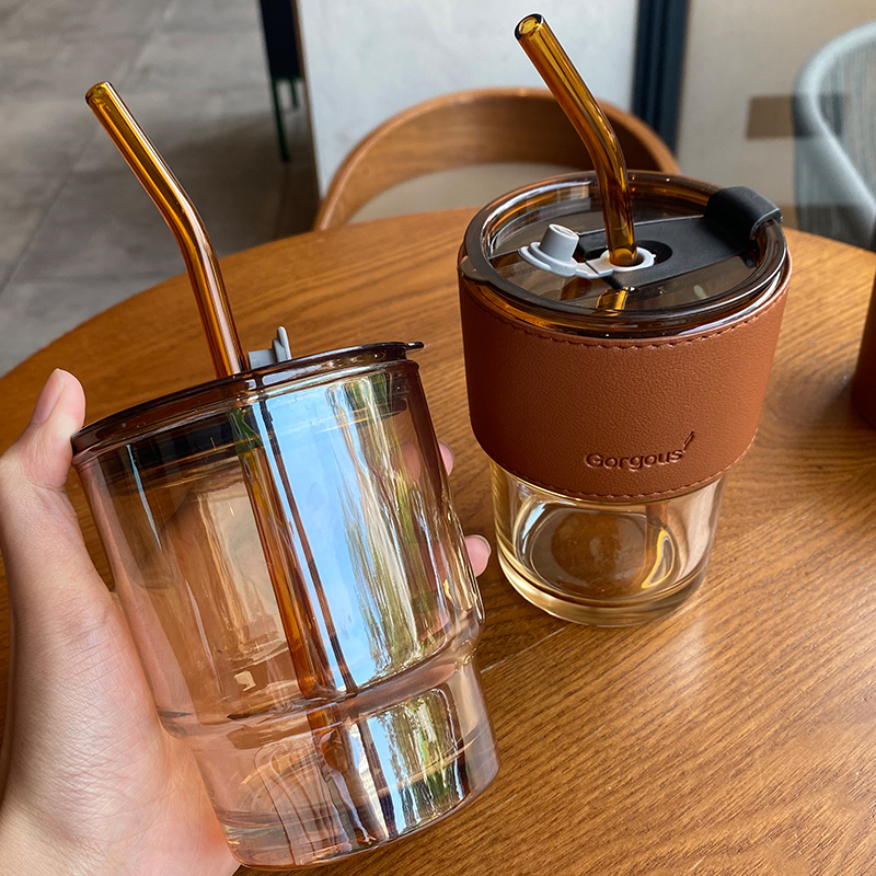 Glass Cup ins high face value sub with cover high temperature resistant home mesh red large capacity new extremely light straw cup Mori system
