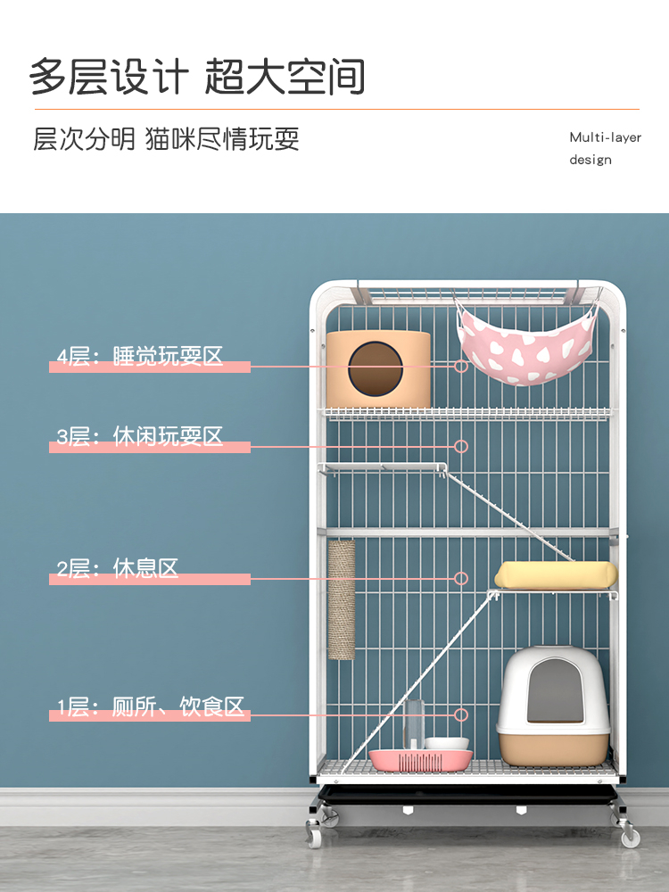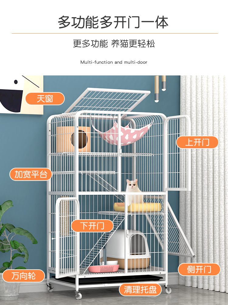 Pet cattery cat house cat cage villa super large free space cat cage indoor large with toilet integrated cat