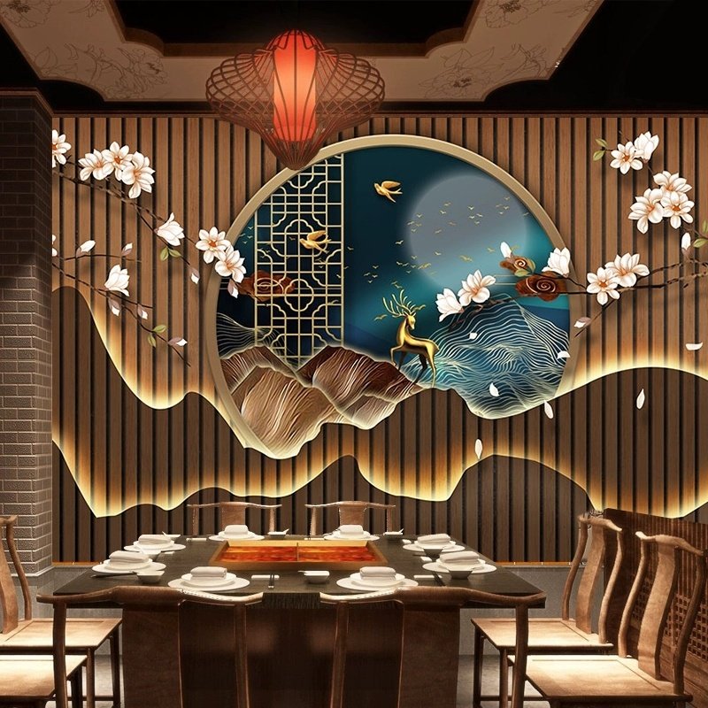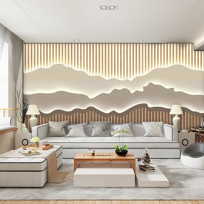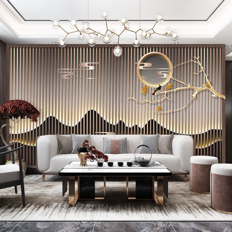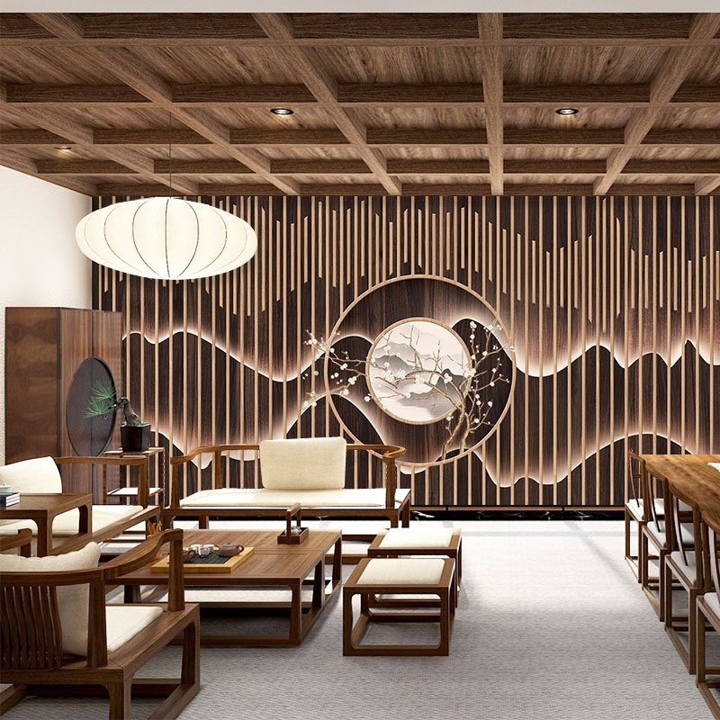 Bamboo Wood Fiber Integrated Wall Panel TV Background Wall Modern Chinese Hotel Tea Room Living-room Sofa Decoration Protective Wall