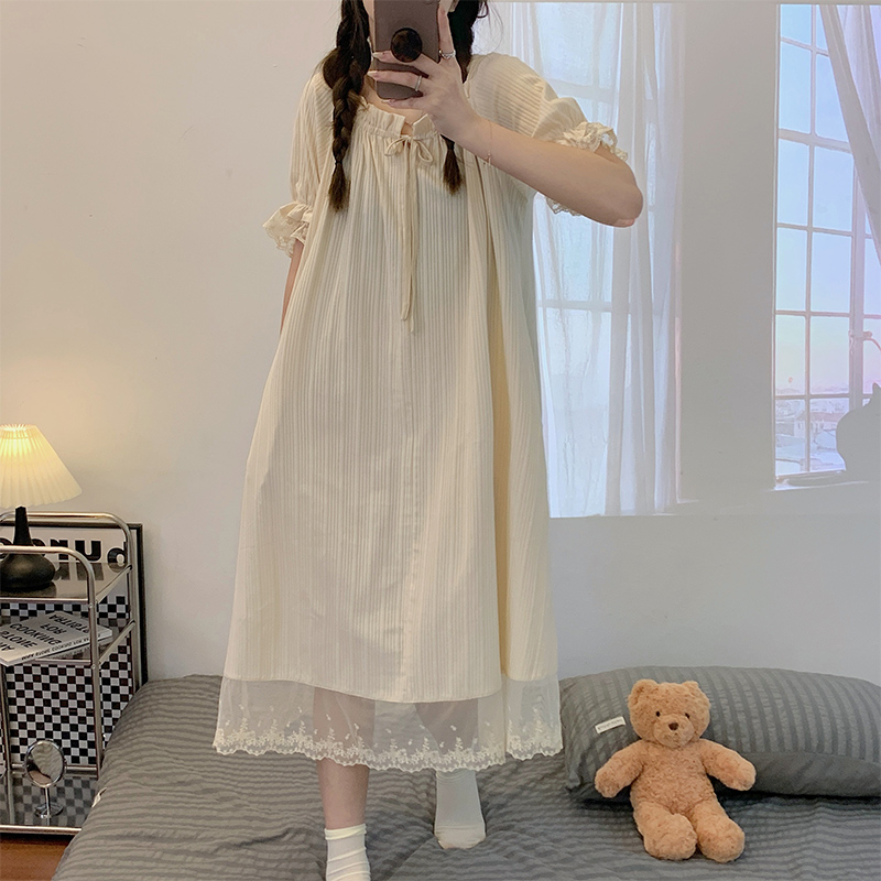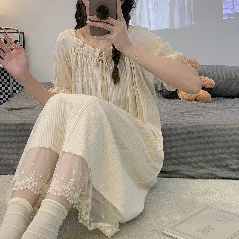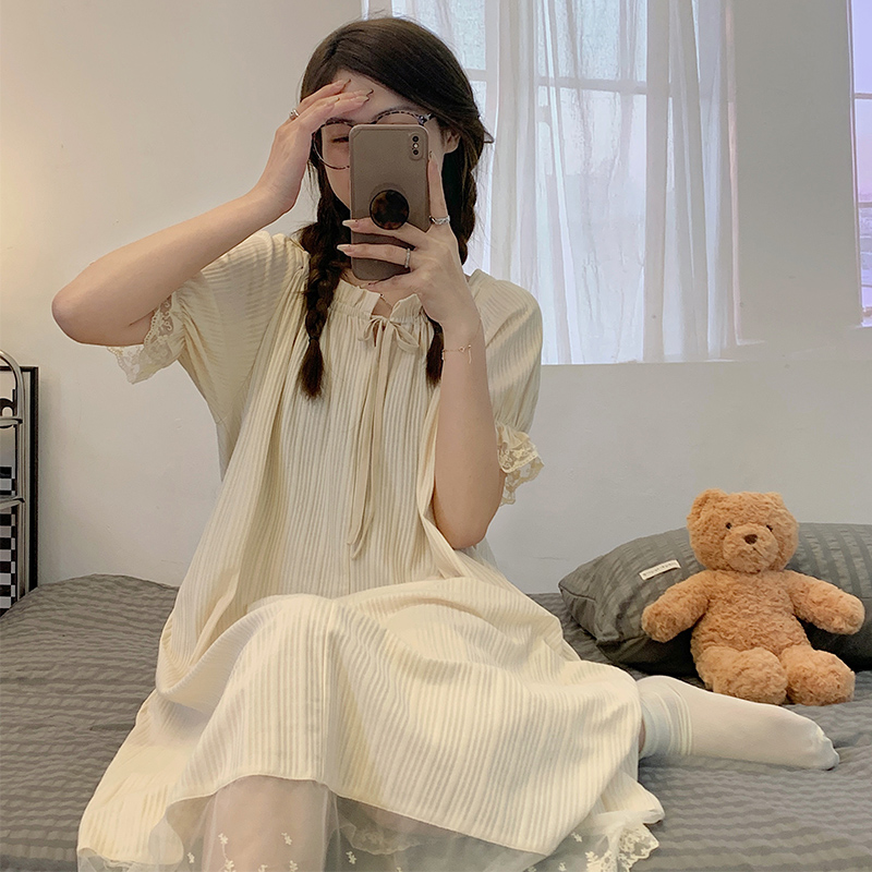 Sleeping Skirt Woman 2022 New Spring Summer Palace Wind Thin Knitted Cotton Short Sleeve Sweet Princess Pyjamas Pyjamas Pyjamas