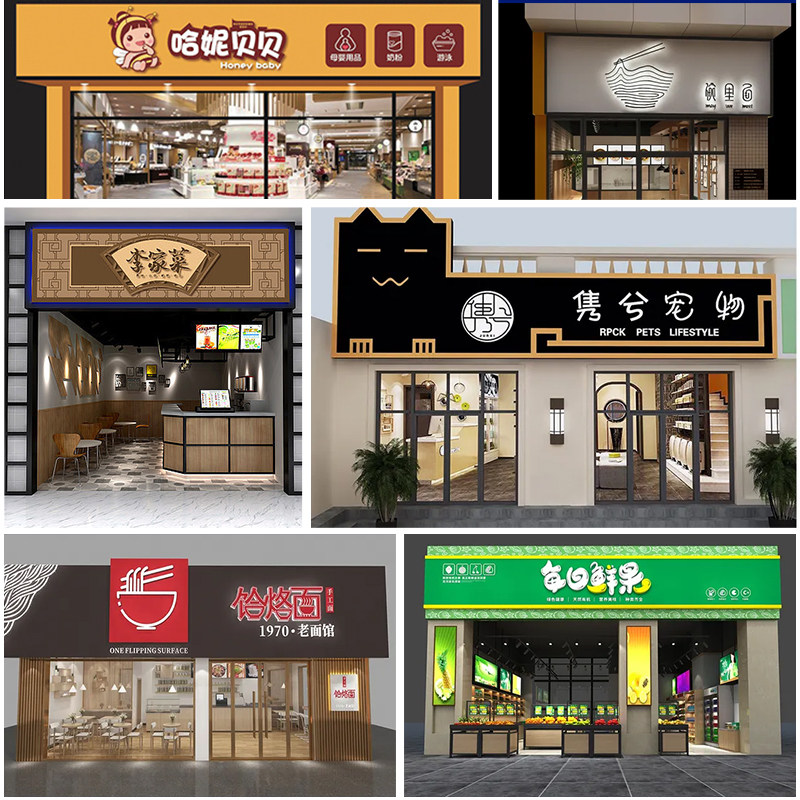 Door head design renderings Plaque light box advertising logo Entity shop decoration Catering facade shop signboard design