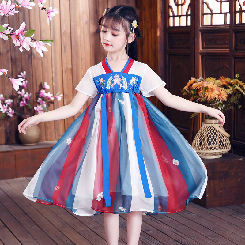 Next inss Girls Hanfu Dress 2022 Summer New Exotic Chinese Style Skirt Kids Princess Skirt