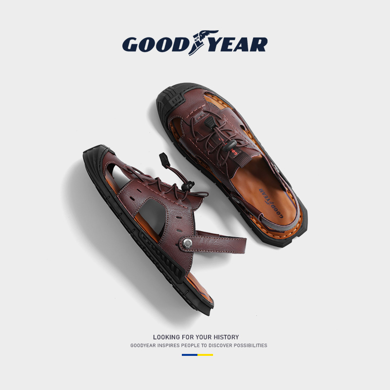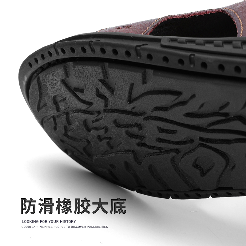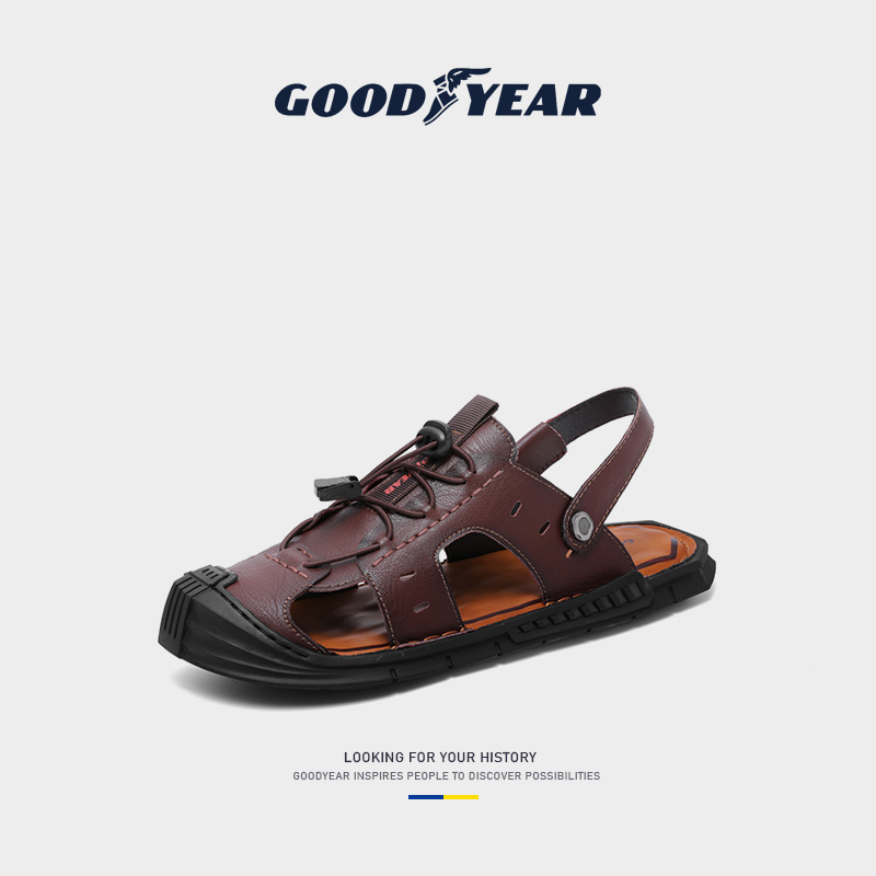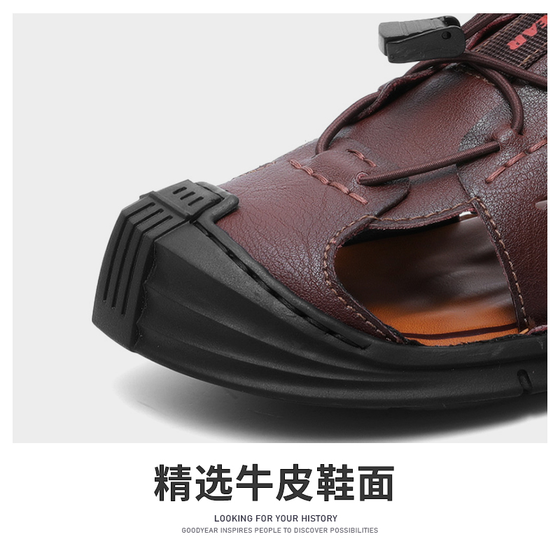 Goodyear genuine leather sandals Summer new outwear Dual-use Beach Shoes Men Drive Softbottom Baotou Sandals Men