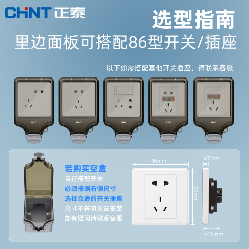 1273 Chint waterproof box socket outdoor rainproof 86 switch open-mounted protective cover bathroom deepening splash-proof