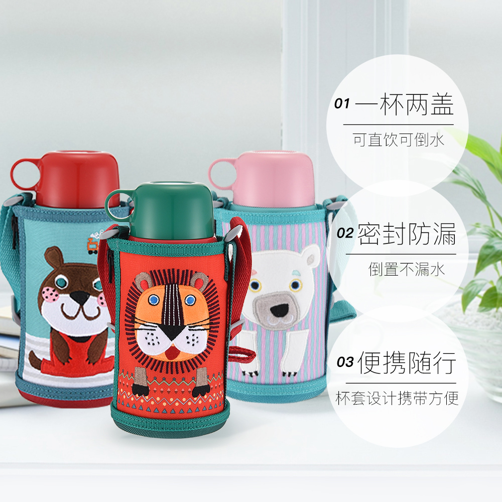 (self-employed) Japanese tiger card Tiger children's double cup lid insulated cup portable bag 600ml straight drinking cup with dual-use-Taobao